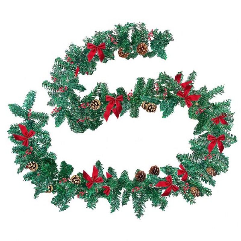 Χριστουγεννιάτικη διακοσμητική γιρλάντα σκληρή σε πράσινο χρώμα και στολισμένη από την Xmas fest - Διαστάσεις: 2,7μ.