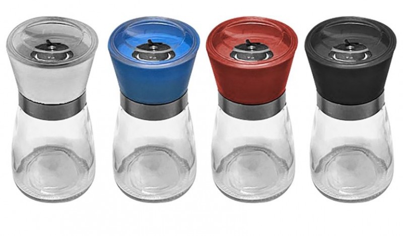 Μύλος πιπεριού από γυαλί και inox σε διάφορα χρώματα ανάλογα την διαθεσιμότητα- Διαστάσεις: 7x12,5εκ.