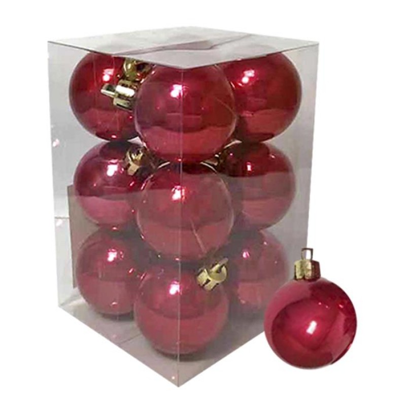Σετ μπάλες 12 τμχ σε περλέ κόκκινο χρώμα από την Xmas fest - Διαστάσεις: Δ4εκ.