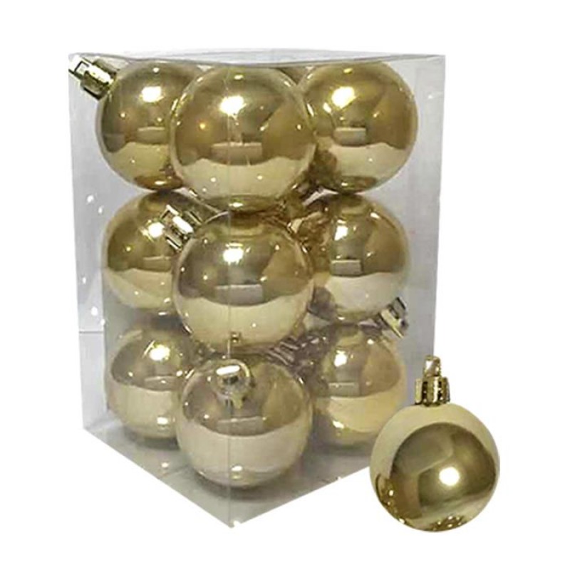 Σετ μπάλες 12 τμχ σε περλέ χρυσό χρώμα από την Xmas fest - Διαστάσεις: Δ4εκ.