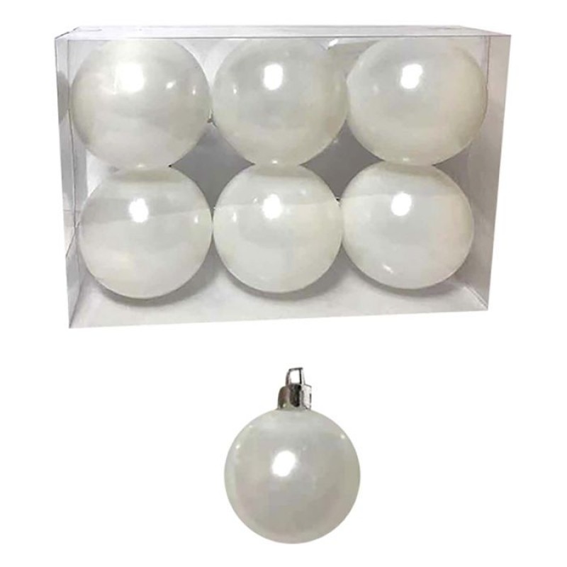 Σετ μπάλες 6 τμχ σε περλέ λευκό χρώμα από την Xmas fest - Διαστάσεις: Δ8εκ.