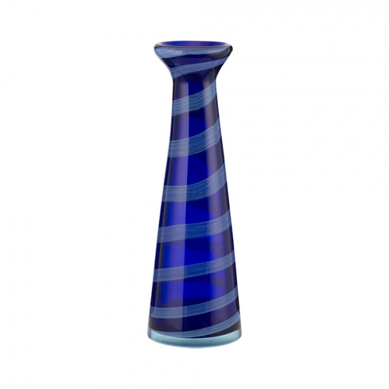 Χειροποίητο βάζο από φυσητό γυαλί σε μπλε - λευκό χρώμα από την WM Collection - Διαστάσεις: 13x32εκ.