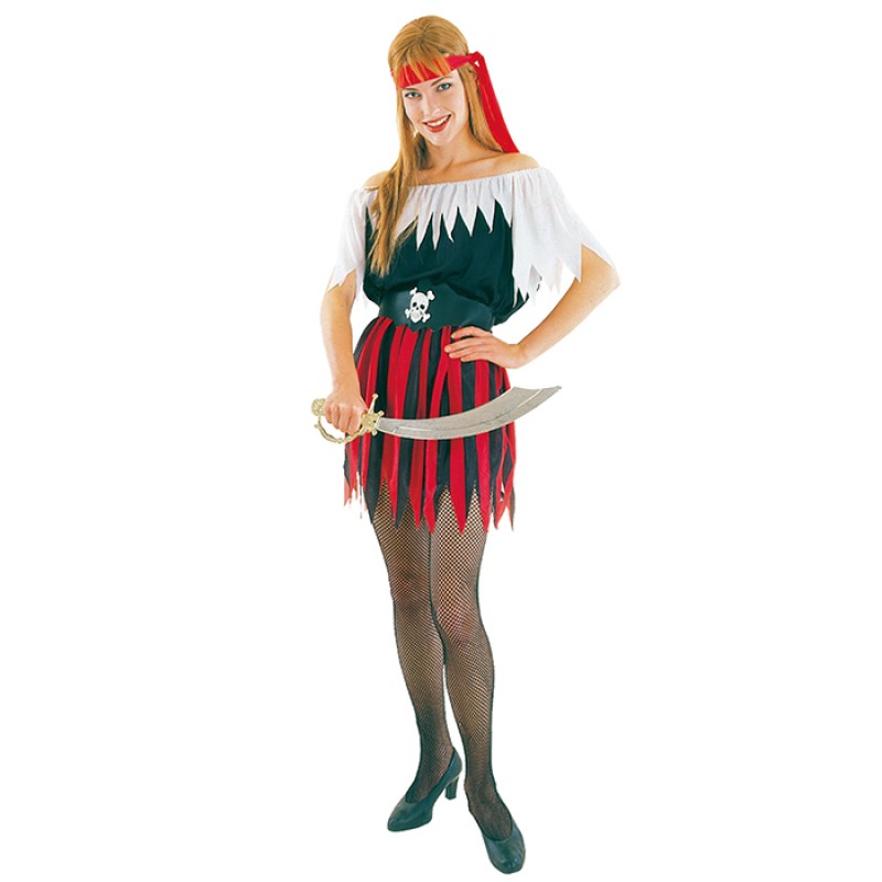 Πειρατίνα. Περιέχει:μπλούζα, φούστα, ζώνη, αξεσουάρ κεφαλής. Δεν περιέχει σπαθί.