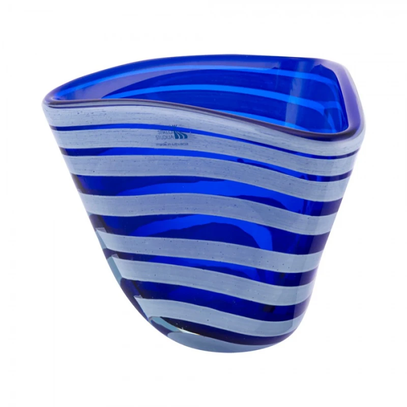 Χειροποίητο βάζο από φυσητό γυαλί σε λευκό - μπλε χρώμα από την WM Collection - Διαστάσεις: 18x17εκ.