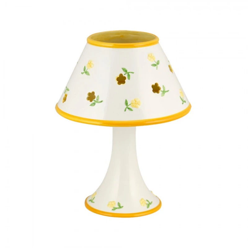 Επιτραπέζιο φωτιστικό πορσελάνης, διάτρητο σε ιβουάρ - πορτοκαλί χρώμα με σχέδιο λουλούδια από την WM Collection - Διαστάσεις: 20x30εκ.