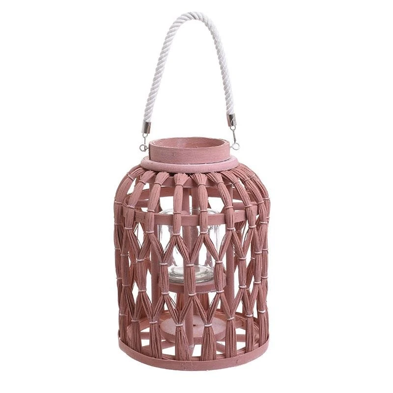 Φανάρι ξύλινο σε ροζ χρώμα από την inart - Διαστάσεις: 25x33εκ.