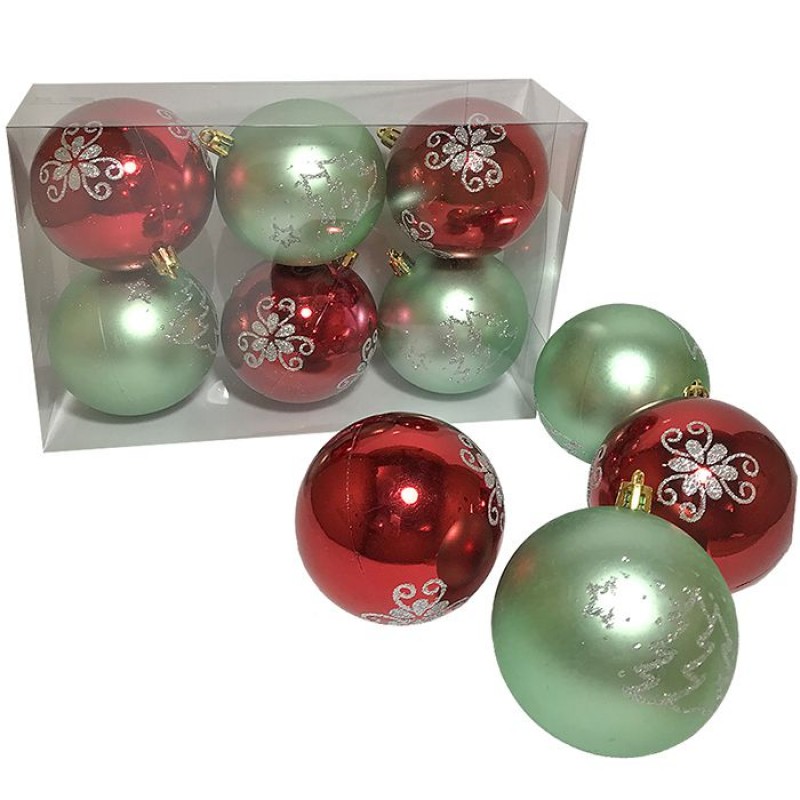 Σετ μπάλες 6 τμχ, 3 σε πράσινο χρώμα και 3 σε κόκκινο χρώμα από την Xmas fest - Διαστάσεις: Δ8εκ.