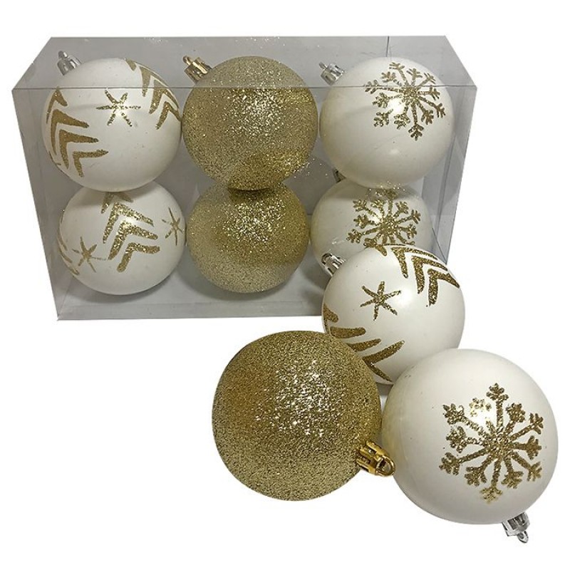 Σετ μπάλες 6 τμχ, 4 σε λευκό χρώμα και 2 σε χρυσό χρώμα από την Xmas fest - Διαστάσεις: Δ7εκ.