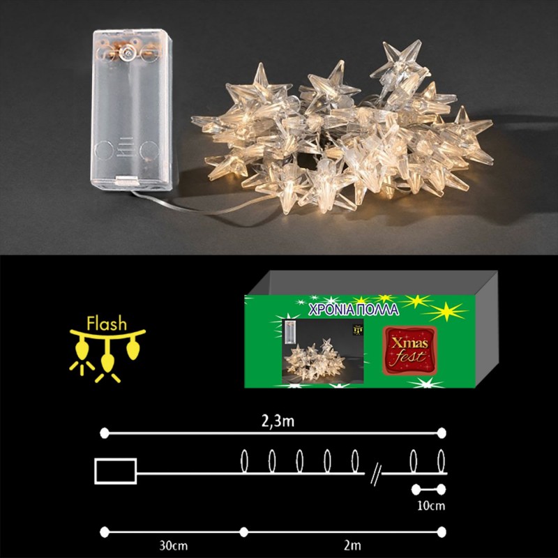 Λαμπάκια αστέρι 20microLed με μπαταρία και θερμό λευκό φως με controller από την Xmas fest. Οι μπαταρίες δεν περιέχονται στην συσκευασία.