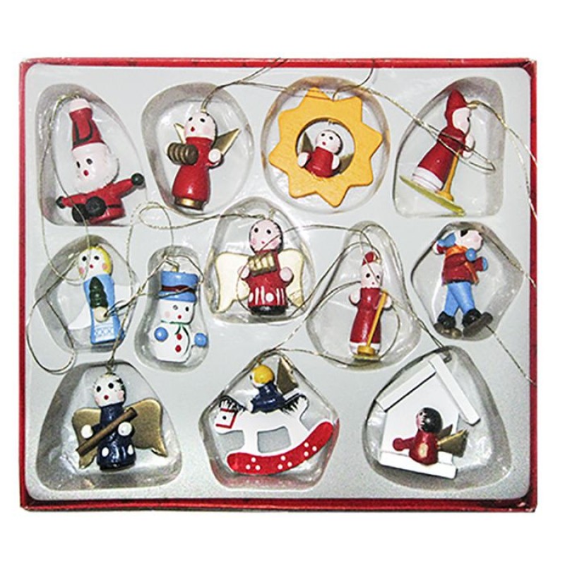 Σετ χριστουγεννιάτικα στολίδια 12 τμχ ξύλινα από την Xmas fest - Διαστάσεις: συσκευασίας: 15x39εκ., στολιδιού:3,5εκ.