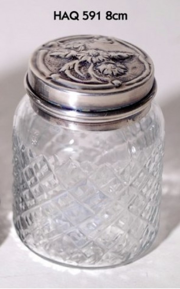 Μικρό δοχείο αντικέ - γυάλινο - πεπαλαιωμένο με καπάκι επικασιτερωμένο με ανάγλυφη παράσταση από την Royal Art - Διάσταση: 8εκ.