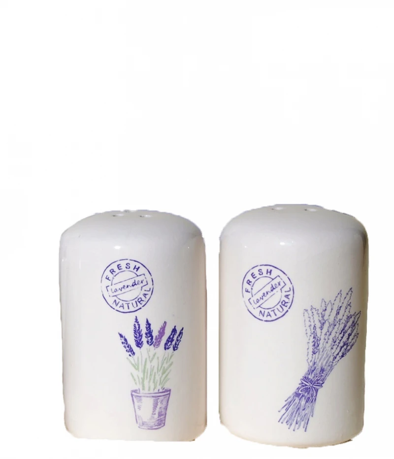 Σετ 2τμχ αλατοπίπερο φαγιάνς σε λευκό χρώμα με σχέδιο λεβάντα από την Royal Art Collection.