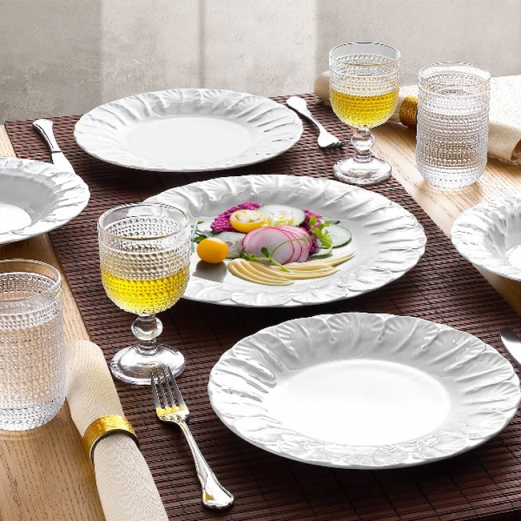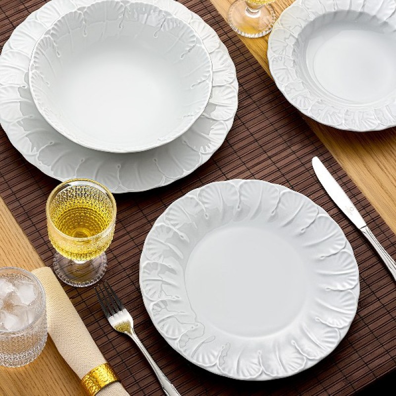 Σερβίτσιο πιάτων 20 τεμαχίων από πορσελάνη της σειράς Jasmine White από την CRYSPO TRIO. Το σετ περιλαμβάνει: 6 Ρηχά, 6 Βαθιά, 6 Φρούτου, 1 Σαλατιέρα, 1 Πιατέλα.
