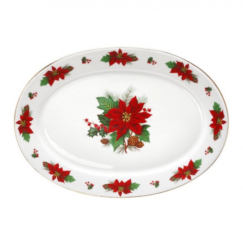 Χριστουγεννιάτικη πιατέλα πορσελάνης οβάλ της σειράς Poisentia από την CRYSPO TRIO - Διαστάσεις: 38εκ.