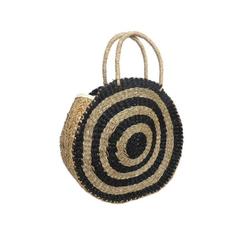 Καλάθι ψάθινο σε φυσικό μπεζ-μαύρο χρώμα από την Art Et Lumiere - Διαστάσεις: 45εκ.