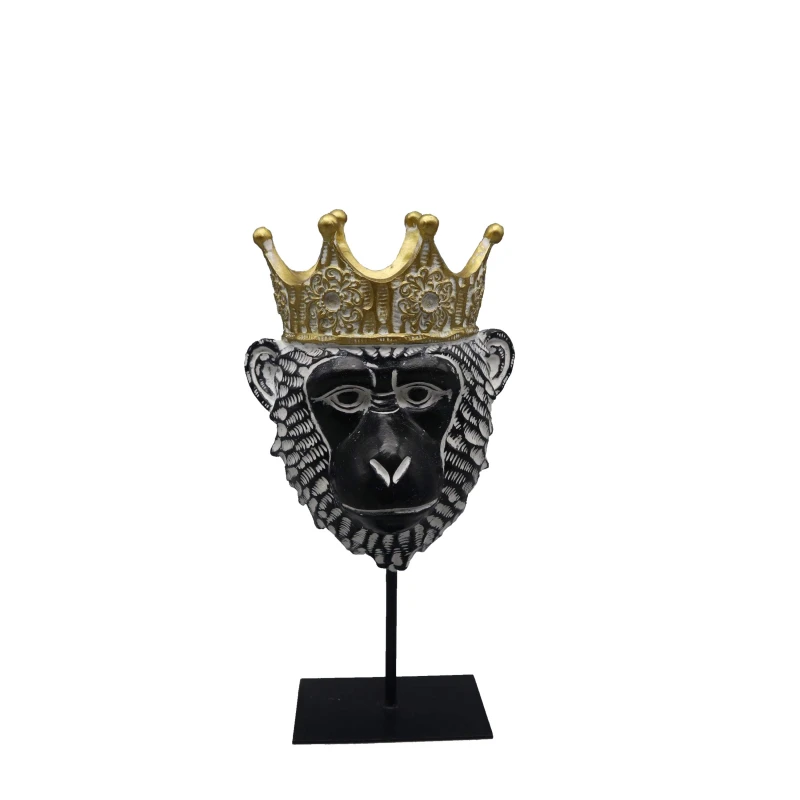 Διακοσμητική επιτραπέζια προτομή πίθηκος με χρυσό στέμμα polyresin από την ESPIEL - Διαστάσεις: 13,5x9x26εκ.