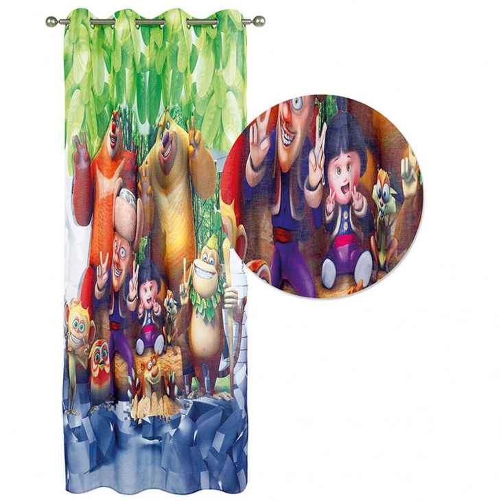Κουρτίνα με κρίκους ανάρτησης, σε ύφασμα 100% pol, μέτριας σκίασης με παιδικές παραστάσεις. Ιδανική για παιδικό υπνοδωμάτιο. Η διάσταση της είναι 140x280εκ.