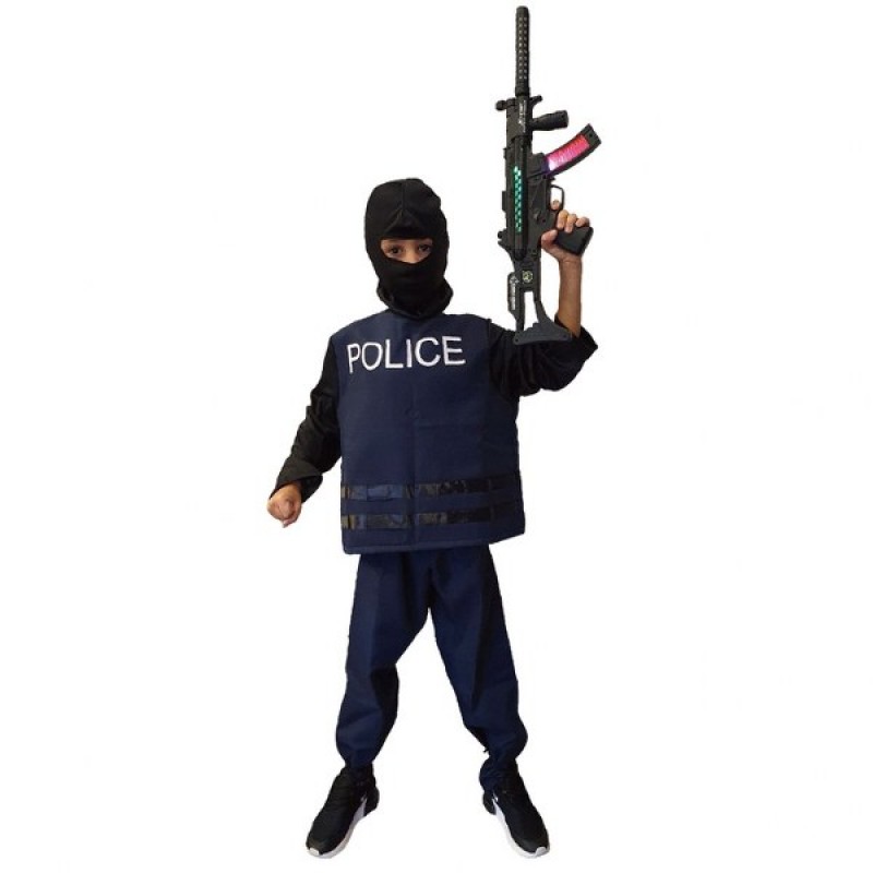 Αστυνομικός ειδικών δυνάμεων. Περιέχει:παντελόνι, γιλέκο, κουκούλα. ΔΕΝ περιλαμβάνει το όπλο. ***Παρακαλώ πολύ αναγράψτε στα σχόλια της παραγγελίας σας το διαθέσιμο μέγεθος που επιθυμείτε.