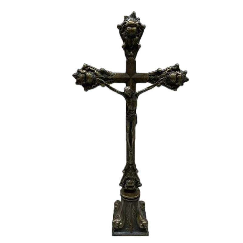 Διακοσμητικός επιτραπέζιος Σταυρός μπρούτζινος σε βάση με ανάγλυφες λεπτομέρειες από την Royal Art Collection - Διαστάσεις: 40εκ.
