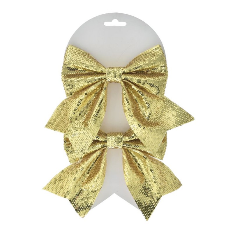 Σετ 2τμχ διακοσμητικός φιόγκος με πούλιες σε χρυσό χρώμα από την iliadis - Διαστάσεις: 14x14εκ. - Η ελάχιστη ποσότητα αγοράς για αυτό το προϊόν είναι 6 σετ.