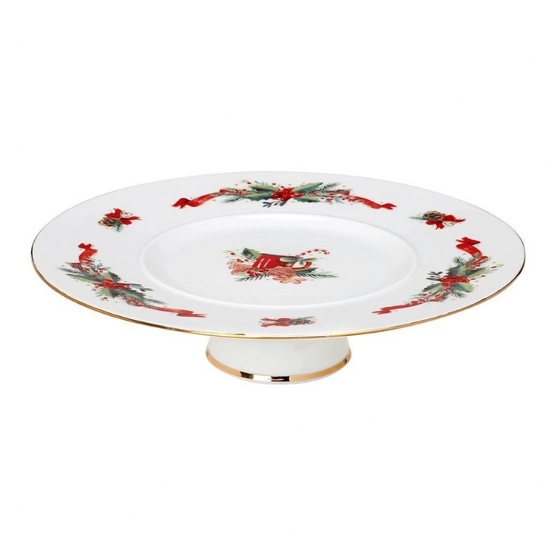 Χριστουγεννιάτικη πιατέλα πορσελάνης στρογγυλή με πόδι της σειράς Christmas Magic από την CRYSPO TRIO - Διαστάσεις: 32εκ.
