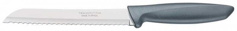 Το μαχαίρι ψωμιού Tramontina Plenus είναι απαραίτητο εργαλείο για καθημερινές εργασίες. Με λεπίδα 8 ιντσών από ανοξείδωτο χάλυβα. Διαθέτει άνετη λαβή πολυπροπυλενίου σε γκρι χρώμα. Είναι ιδανικό για να κόψετε ψωμί χωρίς να το τσακίσετε, διευκολύνοντας τις καθημερινές εργασίες. Πριν από την πρώτη χρήση, πλύνετε καλά το μαχαίρι με ζεστό νερό και απορρυπαντικό πιάτων και στεγνώστε το. Αιχμηρό και κοφτερό προϊόν: Να είστε προσεκτικοί όταν το χειρίζεστε και να φυλάσσετε μακριά από παιδιά. Για καλύτερη συντήρηση του προϊόντος, συνιστάται να στεγνώνετε καλά πριν από την αποθήκευση, ακόμη και μετά το πλύσιμο στο πλυντήριο πιάτων. Συνιστάται η χρήση επιφανειών κοπής πολυπροπυλενίου ή ξύλου για μεγαλύτερη προστασία της κόψης του μαχαιριού. Δεν ενδείκνυται η χρήση του μαχαιριού για την κοπή κατεψυγμένων τροφίμων. Για την απόρριψη του προϊόντος και της συσκευασίας του, ακολουθείστε τις ισχύουσες οδηγίες ανακύκλωσης.