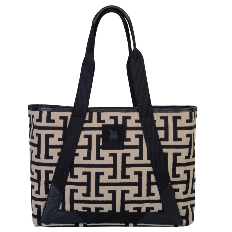 Τσάντα Θαλάσσης Polycotton 35x12x42εκ. Essential 3840 Μαύρη-Μπεζ Greenwich Polo