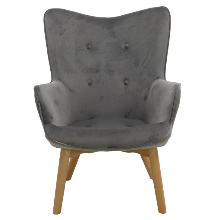 Πολυθρόνα Kido υφασμάτινη βελούδο χρώμα ασημί - γκρι