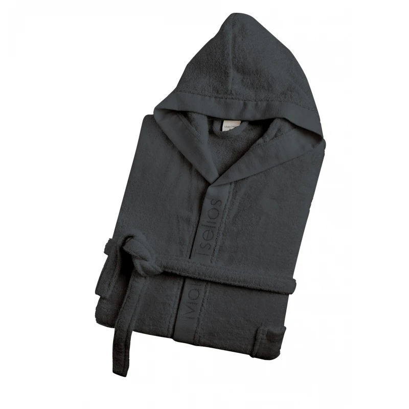 Μπουρνούζι Ενηλίκων Με Κουκούλα Βαμβακερό Extra Large Helmi 4 Grey Makis Tselios