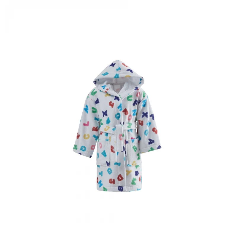 Μπουρνούζι παιδικό με κουκούλα, 100% βαμβακερό, velour, 360gr, digital printed (ψηφιακής εκτύπωσης) με μπλε λεπτομέρειες από την εταιρεία Makis Tselios Home - Μέγεθος: 6-8 ετών.