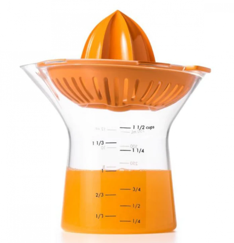 Στίφτης όπου περιλαμβάνει 2 διαφορετικά ανταλλακτικά ώστε να τα χρησιμοποιείτε ανάλογα με το φρούτο που θέλετε να στρίψετε. Οι ενδείξεις μέτρησης είναι ευανάγνωστες και φτάνουν τα 350ml. Το στόμιο είναι κατασκευασμένο με τέτοιο τρόπο ώστε να μη στάζει. Είναι εύκολο στο καθάρισμα, μπορεί να μπει σε πλυντήριο πιάτων. Χωρίς BPA - Διαστάσεις: 13,2x14,47x21,59εκ.