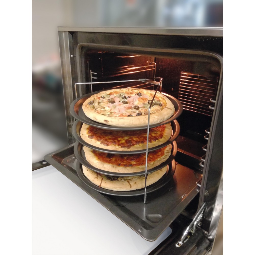 Σετ 4 ταψιά για pizza με πτυσσόμενη βάση. Διάμετρος ταψιών 25,5 εκατοστά. δεν μπαίνει στο πλυντήριο πιάτων.
