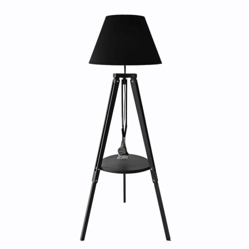 Φωτιστικό επιδαπέδιο ξύλινο με κορμό σε μαύρο χρώμα και μαύρο καπέλο από την Art Et Lumiere - Διαστάσεις: Φ65x175εκ.