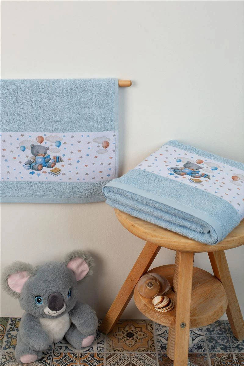 Σετ Πετσέτες 2τμχ Μπεμπέ Βαμβακερές Σιέλ Studying Bear 36 DimCol