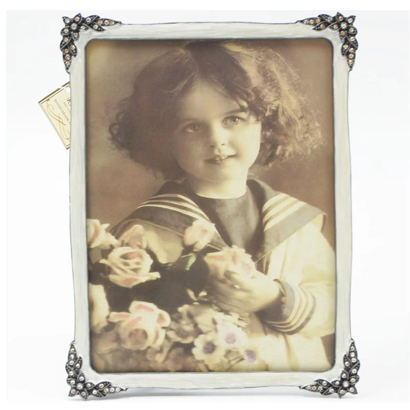 Κορνίζα μεταλλική σε λευκή απόχρωση με σμάλτο και στρας από την Royal Art Collection- Διαστάσεις: 15x20εκ