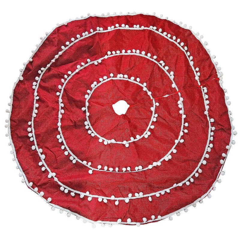 Χριστουγεννιάτικη ποδιά δέντρου υφασμάτινη σε κόκκινο χρώμα με διπλή φόδρα και φούντες από την Xmas fest - Διαστάσεις: Φ120εκ.