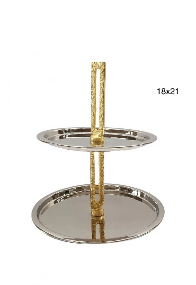 Ορντερβιέρα 2 όροφη ανοξείδωτη αλουμινίου σε σε ασημί χρώμα με χρυσές λεπτομέρειες από την Capolavoro - Διαστάσεις: Φ18x21εκ.