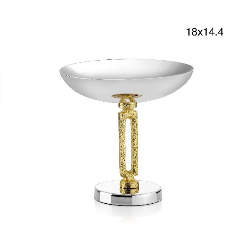 Μπωλ σερβιρίσματος με πόδι ανοξείδωτο αλουμινίου σε σε ασημί χρώμα με χρυσές λεπτομέρειες από την Capolavoro - Διαστάσεις: Φ18x14,4εκ.
