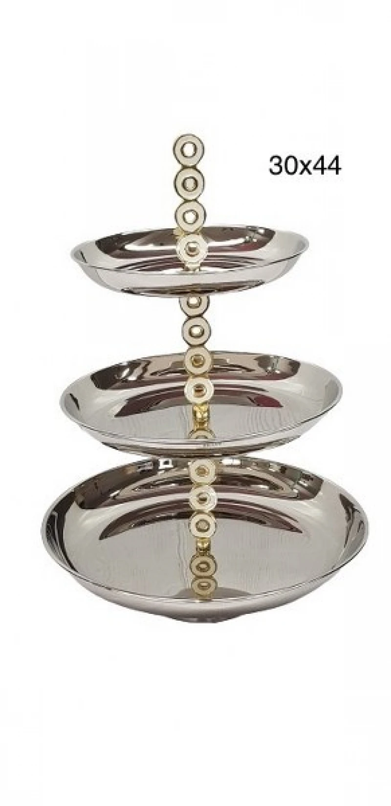 Ορντερβιέρα 3όροφη ανοξείδωτη σε ασημί χρώμα με χρυσές και λευκές λεπτομέρειες από την Capolavoro - Διαστάσεις: Φ30x44εκ.