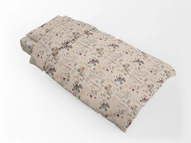 Σετ σεντόνια παιδικά 3 τεμαχίων εμπριμέ που περιέχει: 2τεμ. σεντόνι flat για μονό κρεβάτι διαστάσεων 160x240 cm και 1τεμ. μαξιλαροθήκη διαστάσεων 50x70 cm. Κατασκευασμένο από απαλό 100% βαμβακερή φανέλα 144 κλωστών.