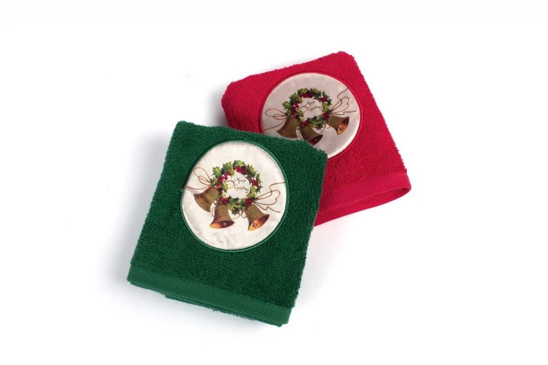 Σετ πετσέτες Χριστουγεννιάτικες 2 τεμ. με applique με χαρούμενα γιορτινά σχέδια και ανεξίτηλα χρώματα, ιδανικό για δώρο που περιέχει που περιέχει: 2 πετσέτες χειρός διαστάσεων 40x60εκ., μία σε κόκκινο και μία σε πράσινο χρώμα. Οι πετσέτες είναι κατασκευασμένες από 100% βαμβάκι έξτρα απαλό και απορροφητικό. Συσκευασία δώρου με γιορτινή κορδέλα.