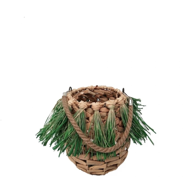 Φανάρι ψάθινο με λαβή σε μπεζ-πράσινο χρώμα από την ESPIEL - Διαστάσεις: Δ22,5x27εκ.