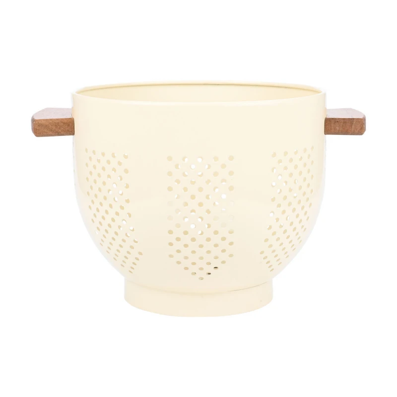 Σουρωτήρι ζυμαρικών ανοξείδωτο σε ιβουάρ χρώμα με ξύλινες λαβές της σειράς Allure από την Estia - Διαστάσεις: 22x22x18εκ.