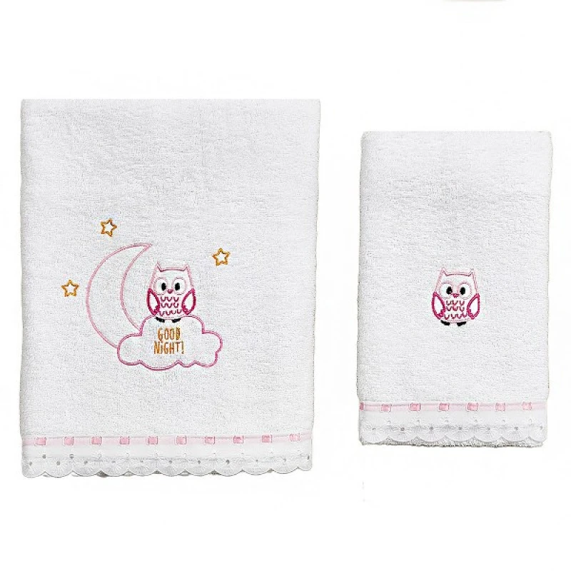 Σετ Πετσέτες 2τμχ Μπεμπέ Βαμβακερές Owl Ροζ 56061
