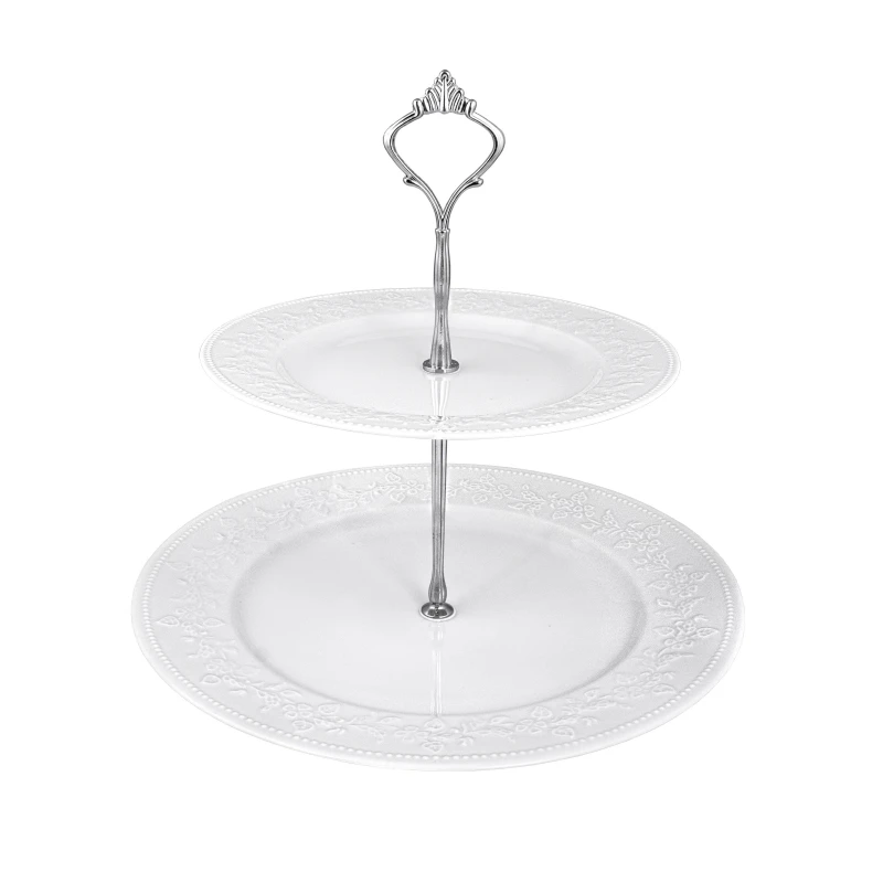 Ορντερβιέρα 2 όροφη πορσελάνης σε λευκό χρώμα της σειράς Kea από την Oriana Ferelli - Διαστάσεις: Δ20εκ.-Δ27εκ.