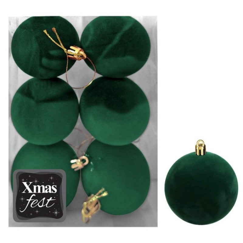 Σετ μπάλες 6 τμχ βελούδινες σε κυπαρισσί χρώμα από την Xmas fest - Διαστάσεις: Δ8εκ.