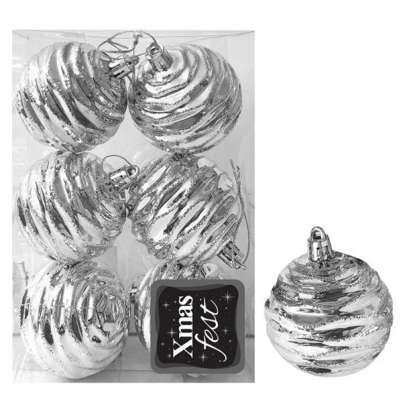 Σετ Μπάλες 6τμχ Σμιλεμένες Ασημί Δ8εκ. Xmas fest 93-3558