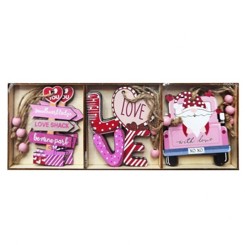 Σετ Παραστάσεις 9τμχ Ξύλινες Κρεμαστές Ροζ 8,5εκ. Xmas fest 93-3662