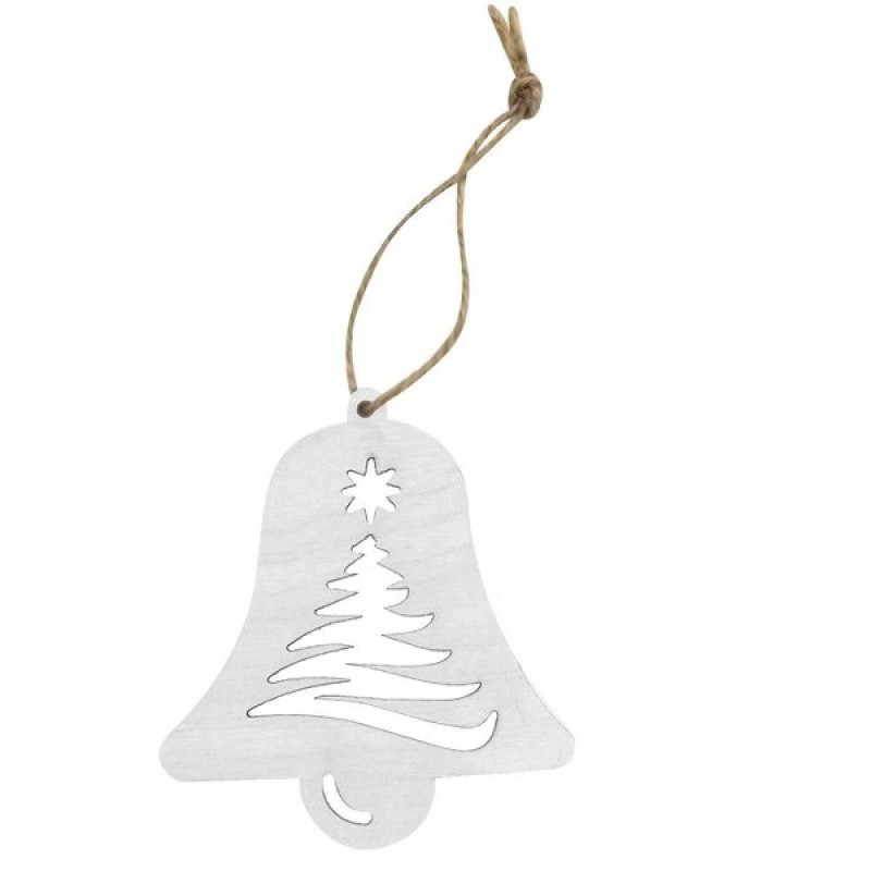 Χριστουγεννιάτικο στολίδι κρεμαστό καμπάνα ξύλινο σε λευκό χρώμα από την Xmas fest - Διαστάσεις: 7εκ. - Η ελάχιστη ποσότητα αγοράς για αυτό το προϊόν είναι 10τμχ.