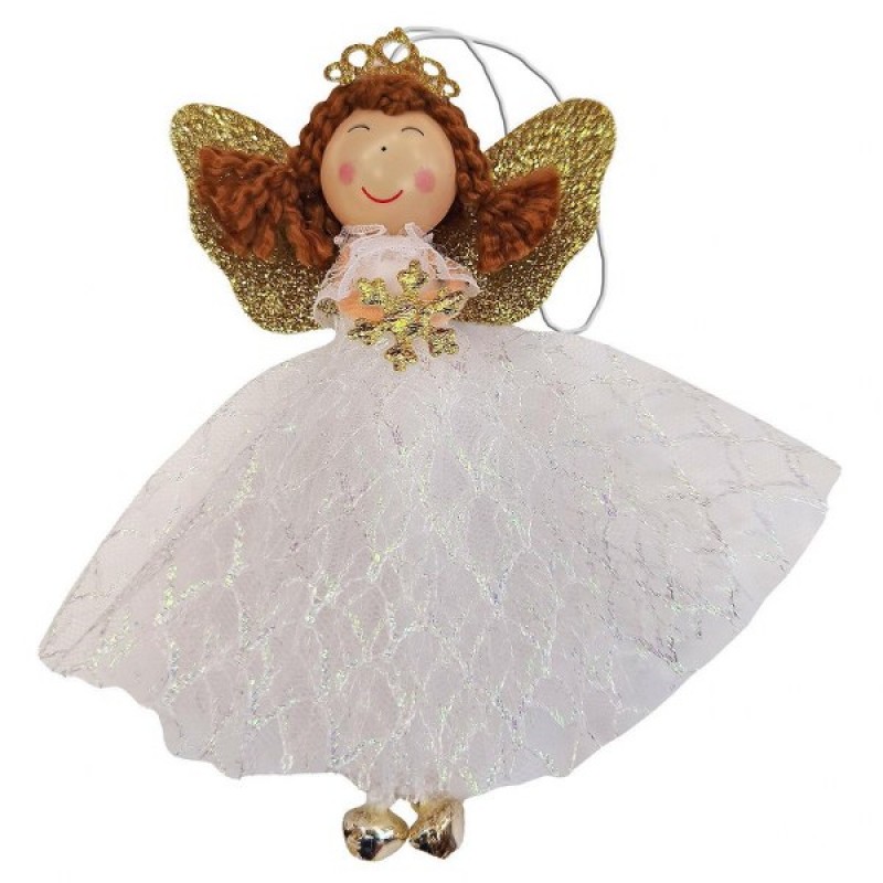 Χριστουγεννιάτικο στολίδι κρεμαστό αγγελάκι με δαντελένιο φόρεμα σε λευκό χρώμα από την Xmas fest - Διαστάσεις: 18εκ. - Η ελάχιστη ποσότητα αγοράς για αυτό το προϊόν είναι 12τμχ.
